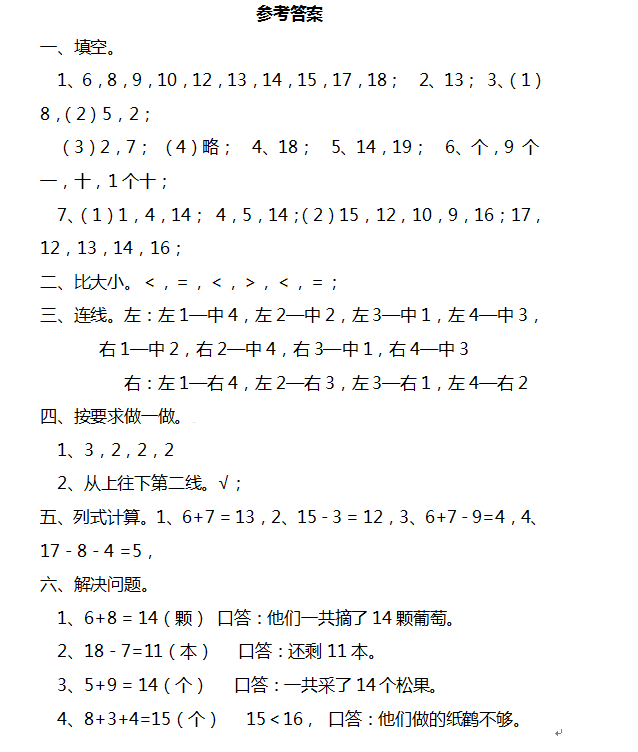 2019年青岛小学一年级数学期末模拟卷四(图片版)(4)