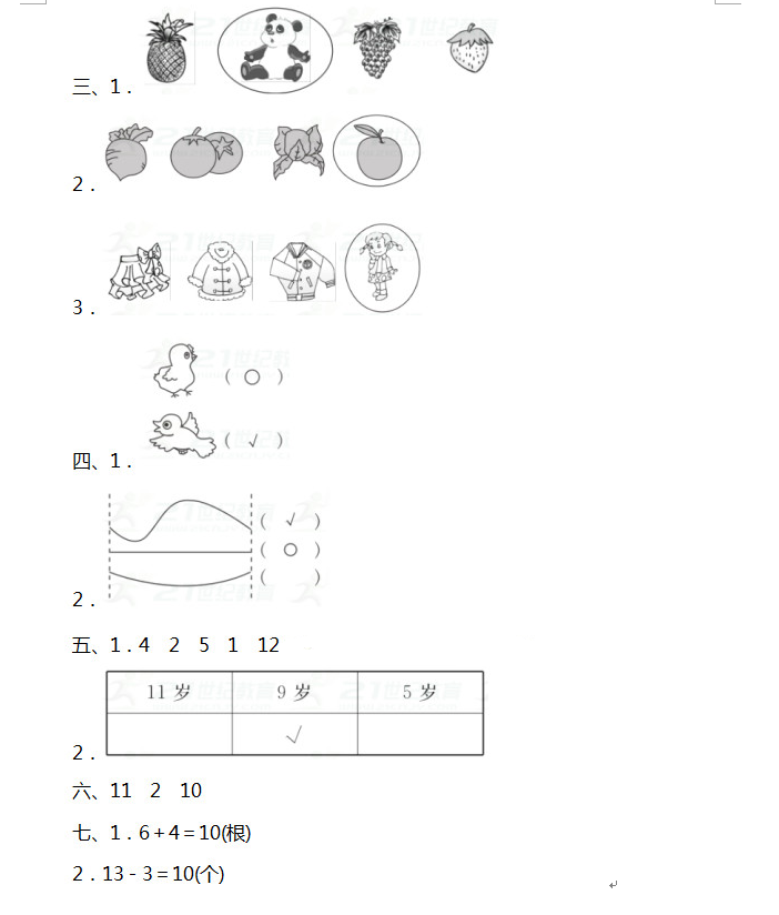 2019年青岛小学一年级数学期末模拟卷五(图片版)(7)