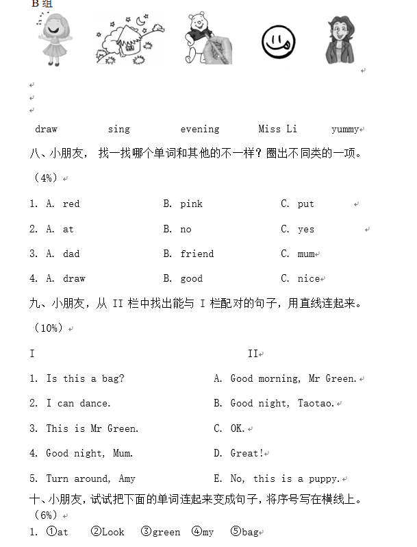 2019年青岛小学一年级英语期末模拟卷一(图片版)(4)