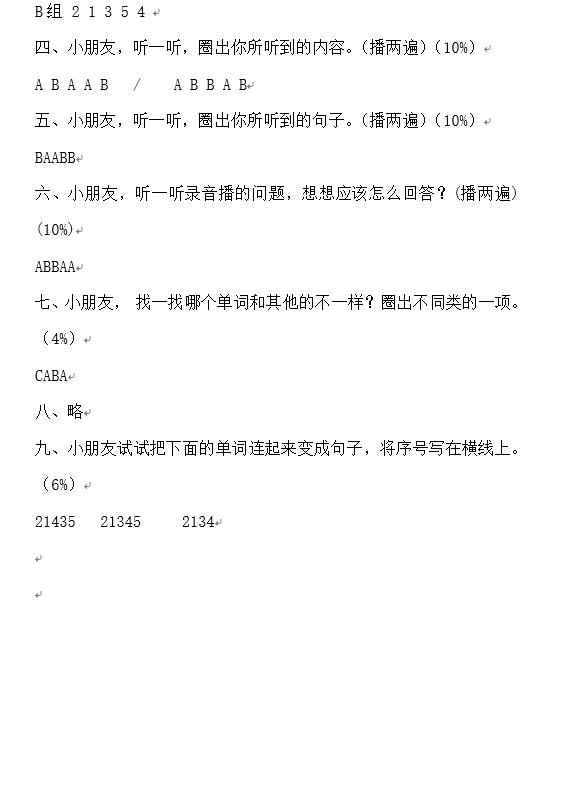 2019年青岛小学一年级英语期末模拟卷一(图片版)(7)