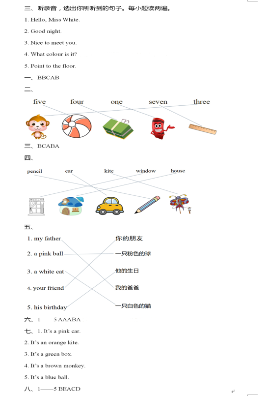 2019年青岛小学一年级英语期末模拟卷五(图片版)(3)
