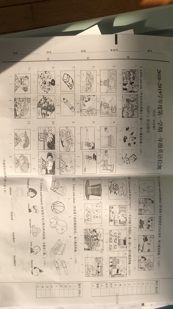 2019年青岛市李沧区一年级英语期末考试卷(图片版)