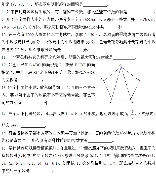 对于大部分五年级的学生来说,小升初尘埃落定,小学毕业近在咫尺。对于每一个学生而言,小学毕业考试是必须经历的过程。尽管考试简单容易,但是也不可丝毫马虎。下面是小编整理的1998-2007年上海市中学余数学学校招生学校入学招生试卷,配有答案过程,预祝各位小学有个完美的收官之作。