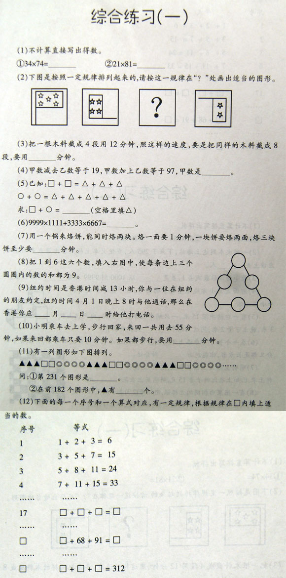 小机灵杯三年级复习资料一 奥数网整理 2010-08-11 13:24:05 第九届小机灵杯官方复习资料出炉,奥数网第一时间呈现,希望对广大考生和家长提供帮助,题后配有详尽解题步骤以作参考! 查看答案请点下一页 首页 上一页 下一页 尾页