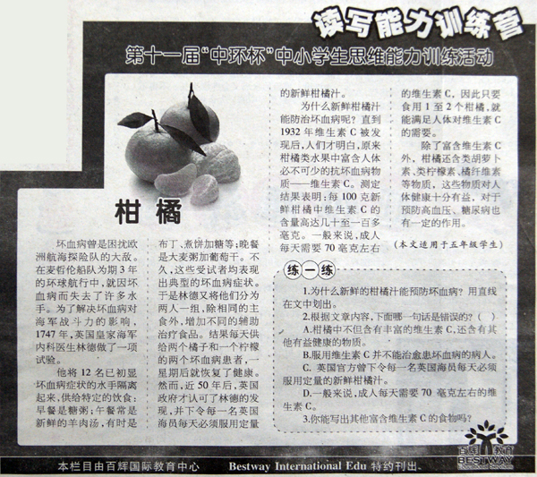 第十一届“中环杯”中小学思维能力训练(读写能力训练营) 学而思奥数网(原创) 2010-11-25 14:31:04 相关连接: 第十一届“中环杯”中小学思维能力训练(三年级 动手动脑:立体图形的展开) 第十一届“中环杯”中小学思维能力训练(四年级 巧称宝石) 第十一届“中环杯”中小学思维能力训练(五年级 动手动脑 封闭型数阵) 第十一届“中环杯”中小学思维能力训练(读写能力训练营)