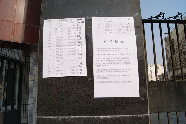 考务楼门口告知牌 (奥数网 陈志华摄影)