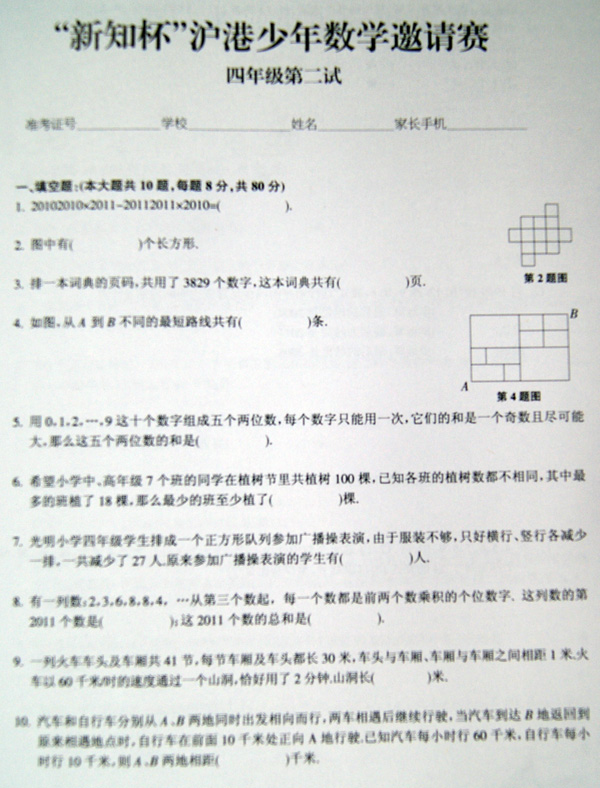 “新知杯”沪港少年数学邀请赛(四年级第二试)