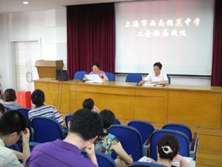 2011年7月1日上午,西南模范中学举行第五届工会换届改选暨全体会员大会。校党总支书记、工会主席夏静纺、校长、党总支副书记汪劲松和副校长郑文、王元平出席了选举大会。