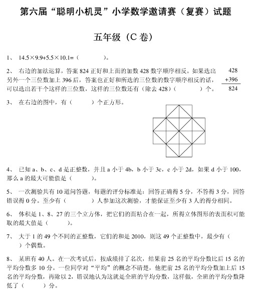 第六届小机灵杯五年级复赛试题(C卷)