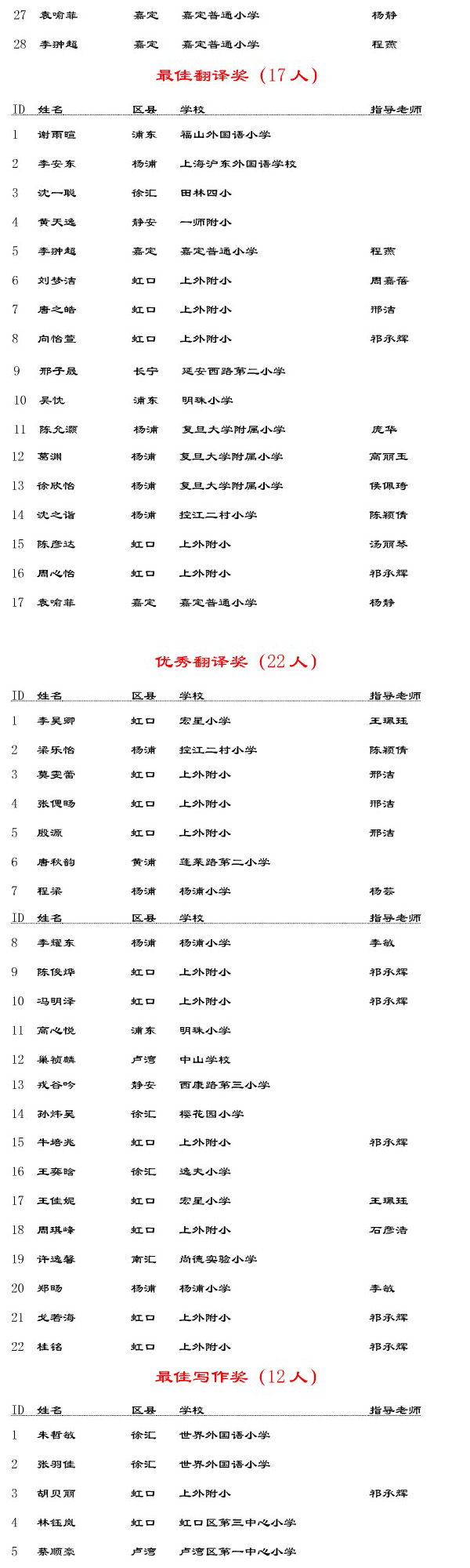 首届上海市中小学“小科学家”创想英语擂台活动获奖名单(2)