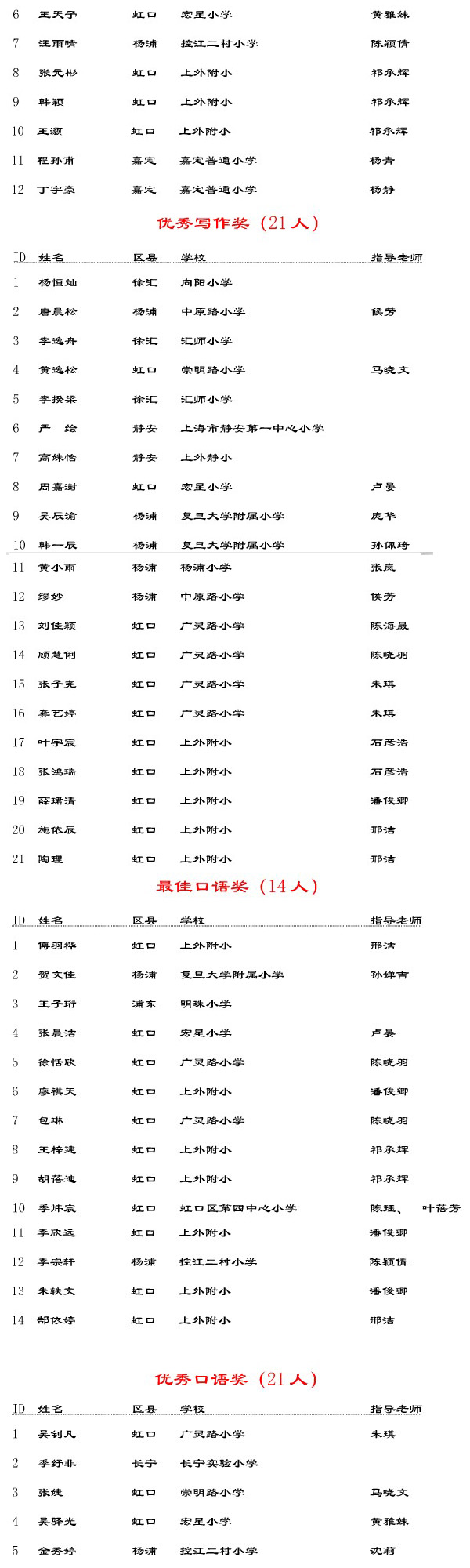 首届上海市中小学“小科学家”创想英语擂台活动获奖名单(3)