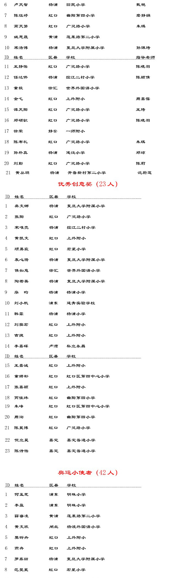 首届上海市中小学“小科学家”创想英语擂台活动获奖名单(4)