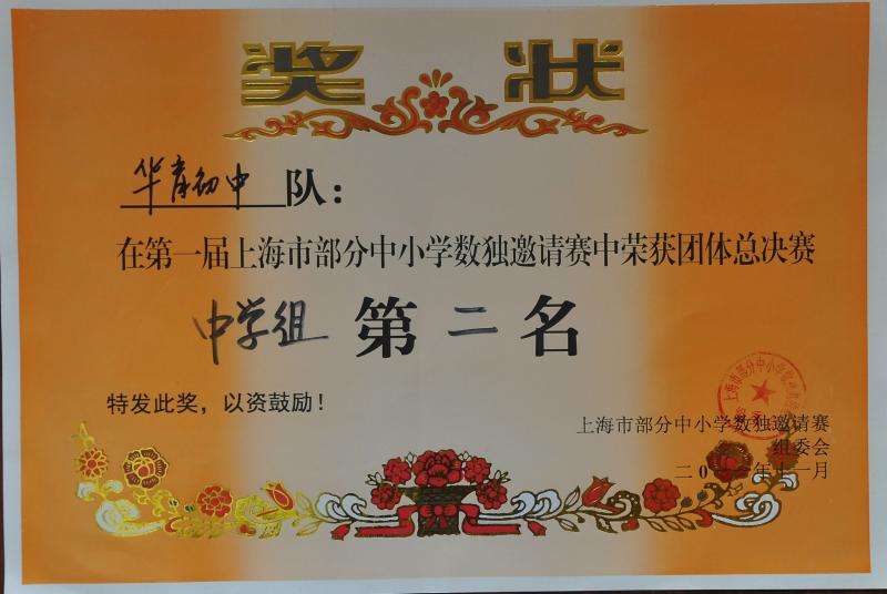 我校获上海市首届中小学生数独邀请赛团体第二名
