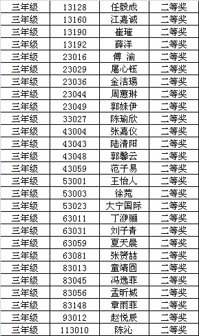 第六届沪港写作能手现场作文竞赛三年级获奖名单: