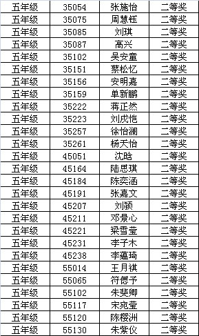第六届沪港写作小能手现场作文竞赛五年级获奖名单(2)