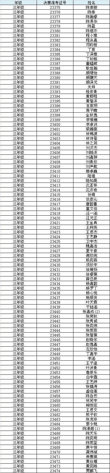 第十届小机灵杯初赛入围名单(三年级)(2)