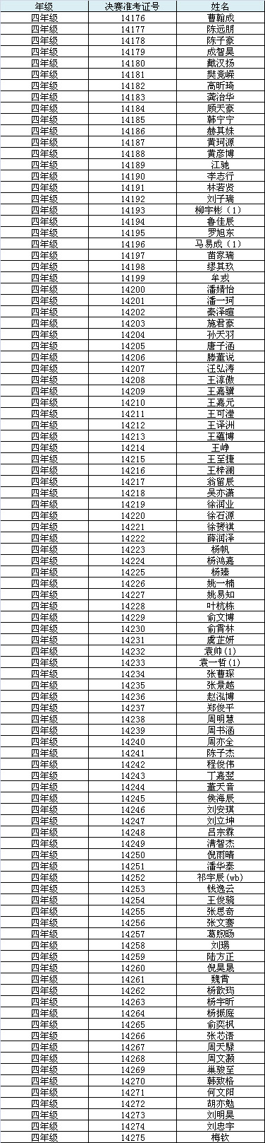 第十届小机灵杯初赛入围名单(四年级)