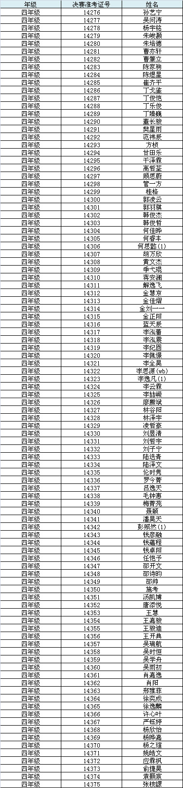 第十届小机灵杯初赛入围名单(四年级)(2)
