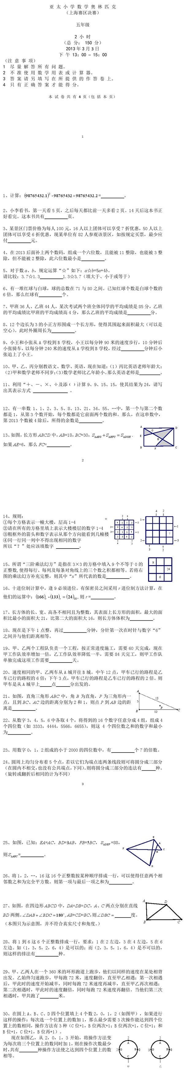 2013第24届亚太杯邀请赛上海决赛五年级试卷