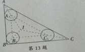 13、如图:一个半径为0.5的小圆环在一个直角△ABC内滚动,从A1到B1,再到C1,最后回到A1,已知AB=3,BC=4,且AA1,BB1,CC1的延长线交于同一点I,点I到三条边的距离相等,那么,小圆环滚了一圈,△A1B1C1的周长为___________,则此事的△DHL的面积为________的解为___________