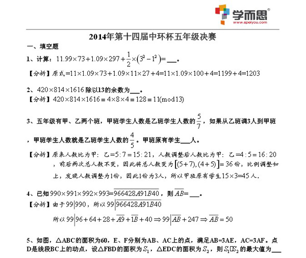 第十四届“中环杯”五年级决赛试题及详解(2) 上海e度论坛 2014-03-15 18:15:18 第十四届“中环杯”决赛五年级试卷详解 请下载附件: 第十四届“中环杯”决赛五年级试卷详解 (本地下载) 点击进入论坛参与讨论:第十四届中环杯五年级决赛试卷(柔扬整理) 首页 上一页 下一页 尾页