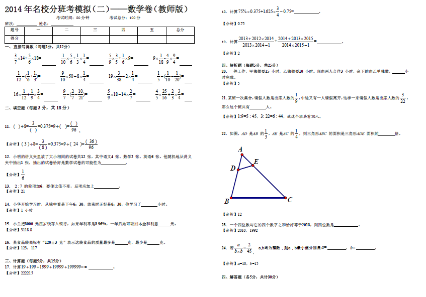 2014年上海名校分班考数学模拟题及答案解析(二)(2) 本站原创 2014-05-30 14:16:24 点击下载完整试题答案>>>2014年上海名校分班考数学模拟题答案(二) 首页 上一页 下一页 尾页