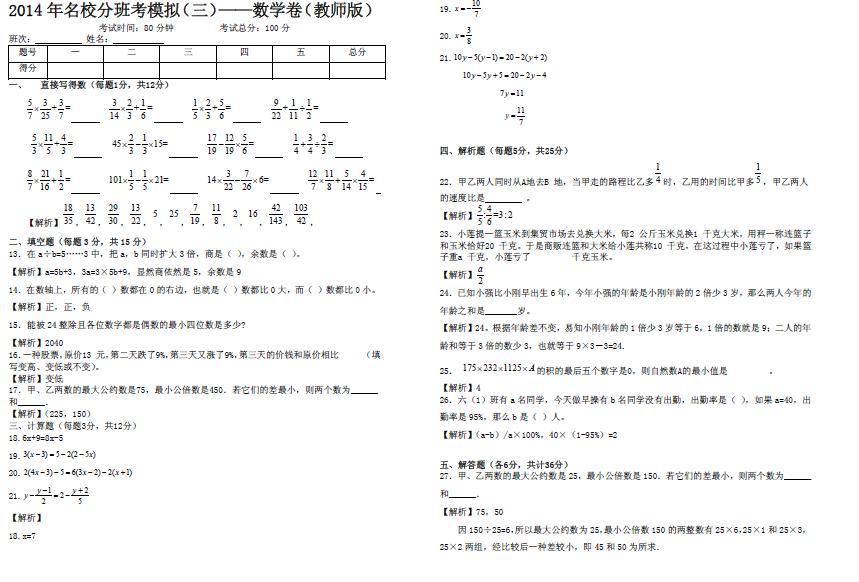 2014年上海名校分班考数学模拟题及答案解析(三)(2) 本站原创 2014-05-30 14:57:46 点击下载完整试题答案>>>2014年上海名校分班考数学模拟题答案(三) 首页 上一页 下一页 尾页