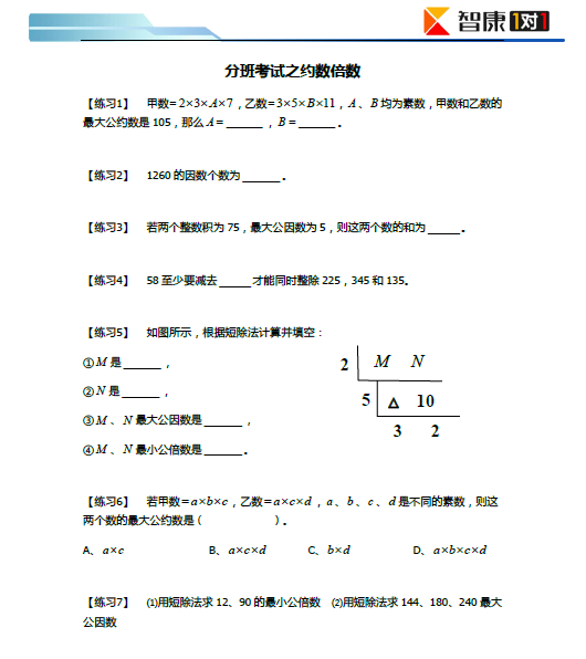 上海分班考模拟试题天天练:约数倍数(6.19)