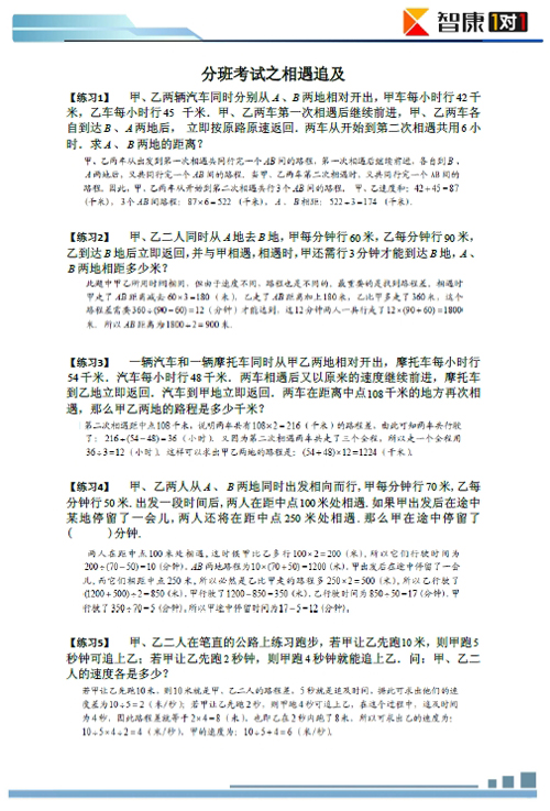 上海分班考试模拟题天天练:相遇追及(7月7日)