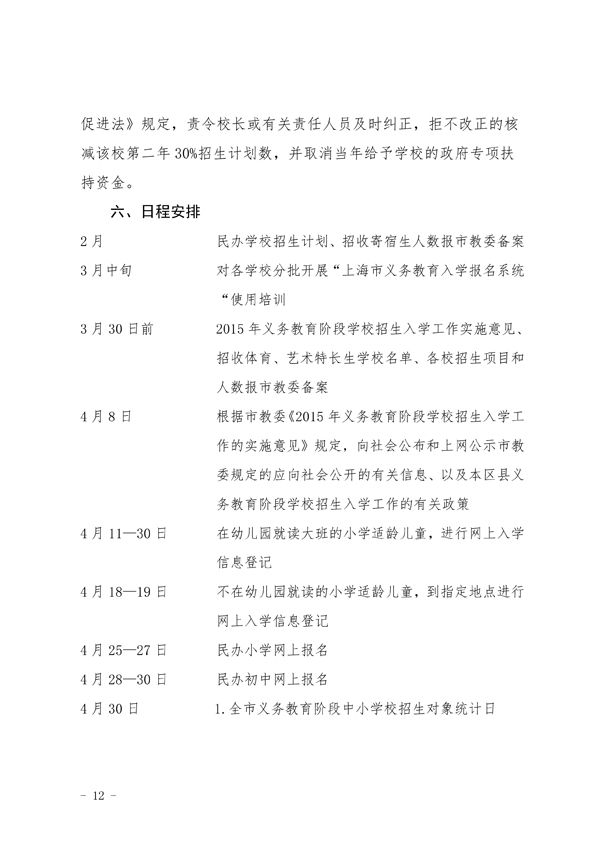 2015年上海普陀区义务教育阶段学校招生入学工作实施意见(12)