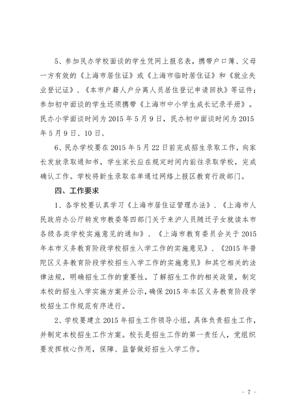 2015年上海普陀区义务教育阶段学校招生入学工作实施意见(7)