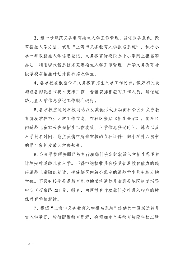 2015年上海普陀区义务教育阶段学校招生入学工作实施意见(8)