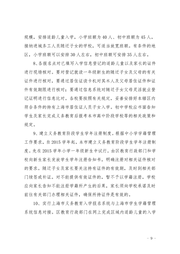 2015年上海普陀区义务教育阶段学校招生入学工作实施意见(9)