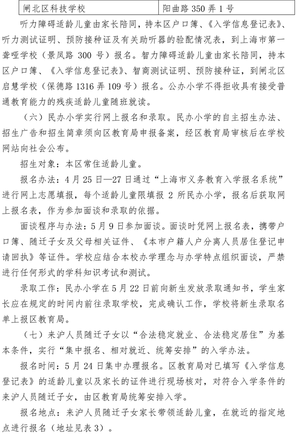 2015年上海闸北区义务教育阶段学校招生入学工作实施意见(6)