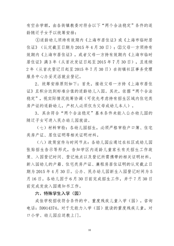 2015年上海嘉定区义务教育阶段学校招生入学工作实施意见(10)