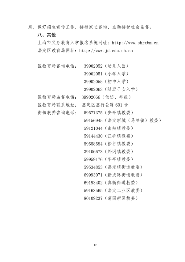 2015年上海嘉定区义务教育阶段学校招生入学工作实施意见(12)