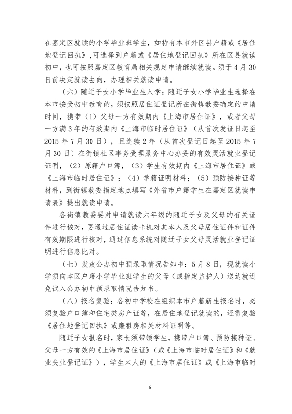 2015年上海嘉定区义务教育阶段学校招生入学工作实施意见(6)