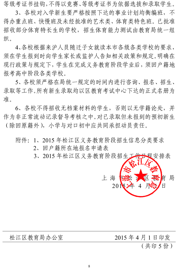 2015年上海松江区义务教育阶段学校招生入学工作实施意见(8)