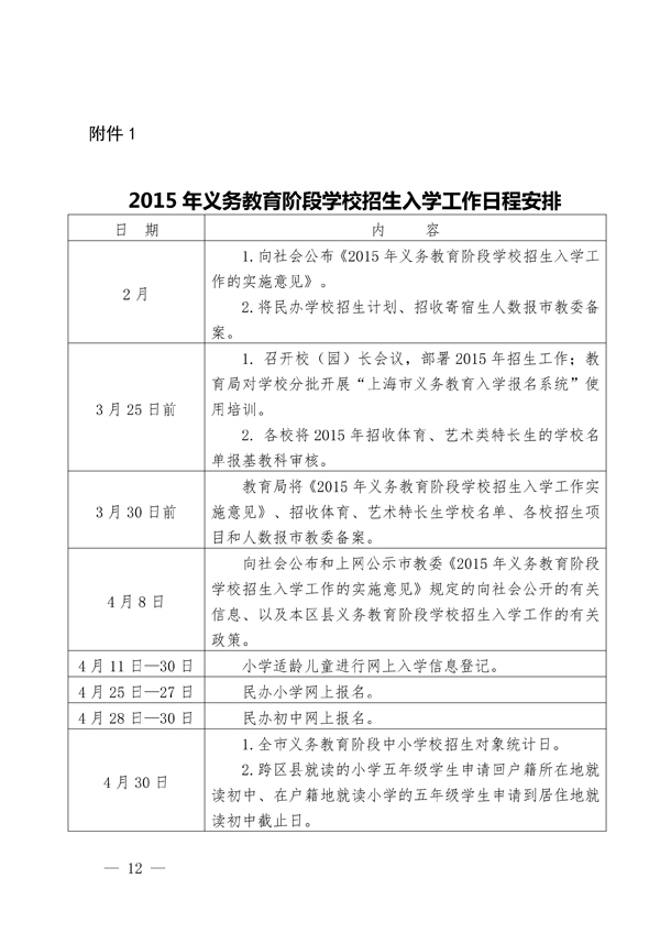 2015年上海崇明县义务教育阶段学校招生入学工作实施意见(12)