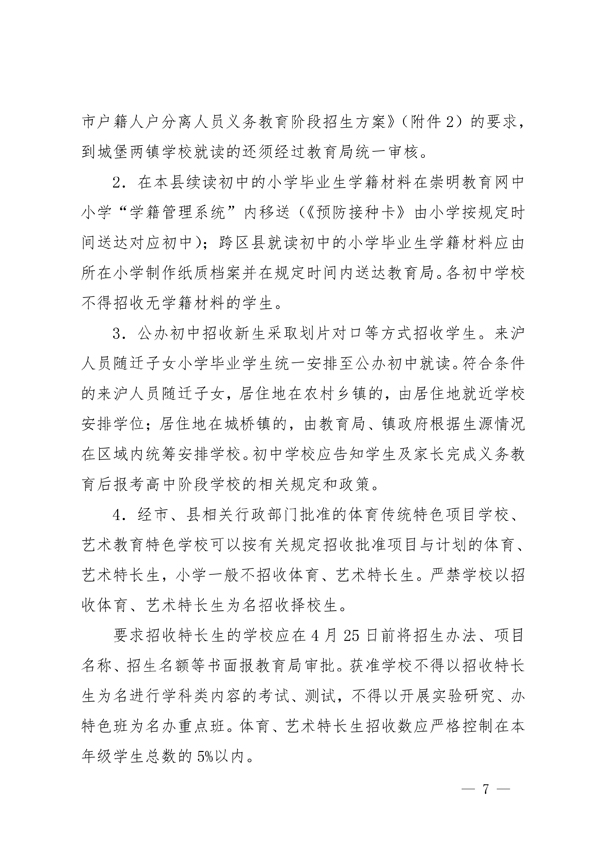2015年上海崇明县义务教育阶段学校招生入学工作实施意见(7)