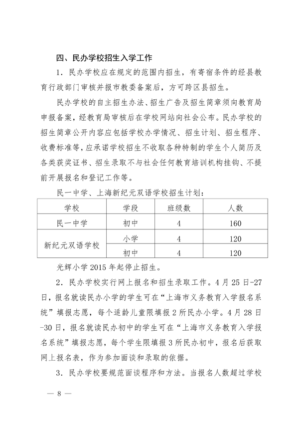 2015年上海崇明县义务教育阶段学校招生入学工作实施意见(8)