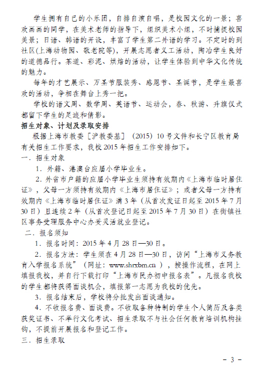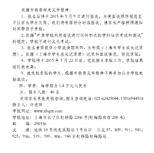 上海市民办新虹桥中学2015年初中招生简章(2)