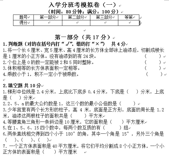 2015上海小升初进行到现在,已经有部分初中的小升初入学分班测试结束了,但是还有很多初中学校的分班考试即将开始,下面是一套小升初分班考试模拟试题,供参考。