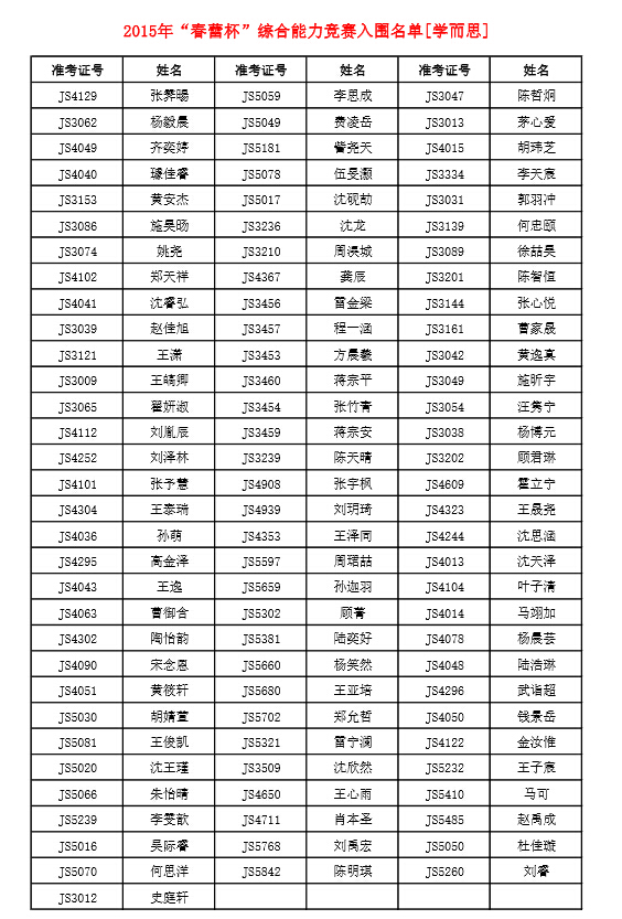 2015-2016上海春蕾杯综合能力竞赛入围名单