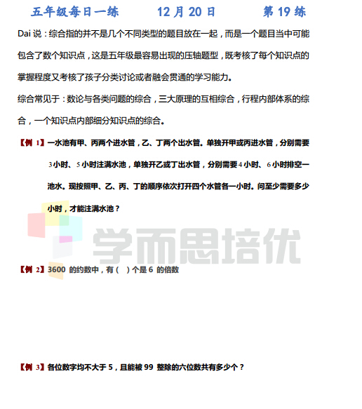 上海的几大奥数杯赛即将开考,12月伊始,上海的考生是不是该把精力放在即将开始的几大杯赛中,在这里,学而思刘老师力邀了四年级几位比较有经验的老师加入了中环杯小机灵杯每日一练的小团伙。每日3道题目喜刷刷一下,看看孩子是否各个板块都无懈可击。
