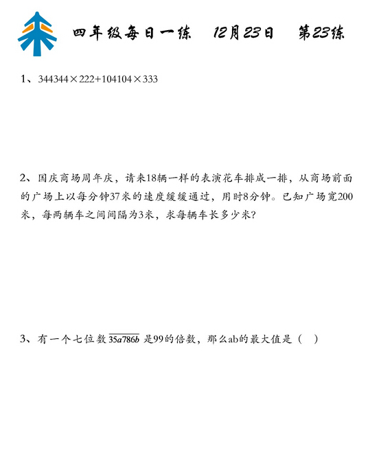 上海的几大奥数杯赛即将开考,12月伊始,上海的考生是不是该把精力放在即将开始的几大杯赛中,在这里,学而思刘老师力邀了四年级几位比较有经验的老师加入了中环杯小机灵杯每日一练的小团伙。每日3道题目喜刷刷一下,看看孩子是否各个板块都无懈可击。
