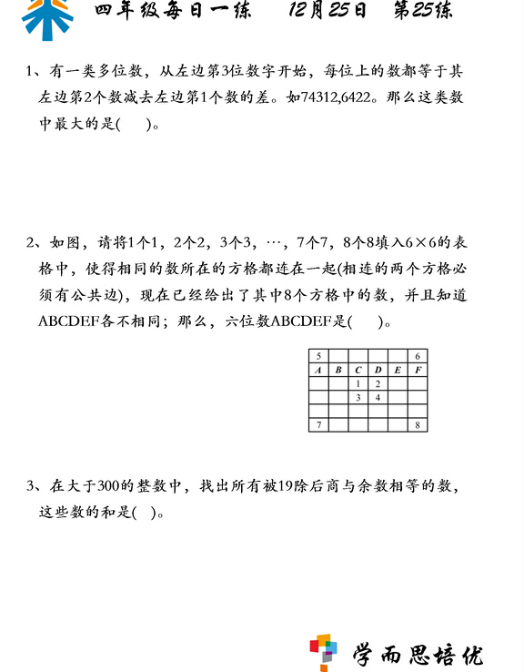 上海的几大奥数杯赛即将开考,12月伊始,上海的考生是不是该把精力放在即将开始的几大杯赛中,在这里,学而思刘老师力邀了四年级几位比较有经验的老师加入了中环杯小机灵杯每日一练的小团伙。每日3道题目喜刷刷一下,看看孩子是否各个板块都无懈可击。