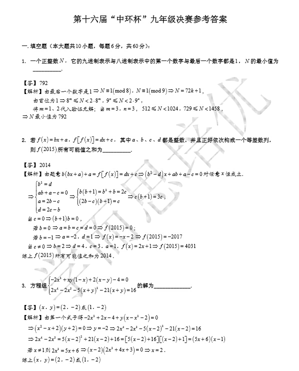 上海第十六届中环杯九年级决赛真题解析 上海奥数网 2016-01-19 13:16:13 上海第十六届中环杯九年级决赛考试结束啦,下面小编将上海学而思老师分享的本届中环杯九年级决赛的真题解析转发如下,供参考。 >>>点击下载上海第十六届中环杯九年级决赛真题解析 【点击下一页查看更多】 首页 上一页 下一页 尾页