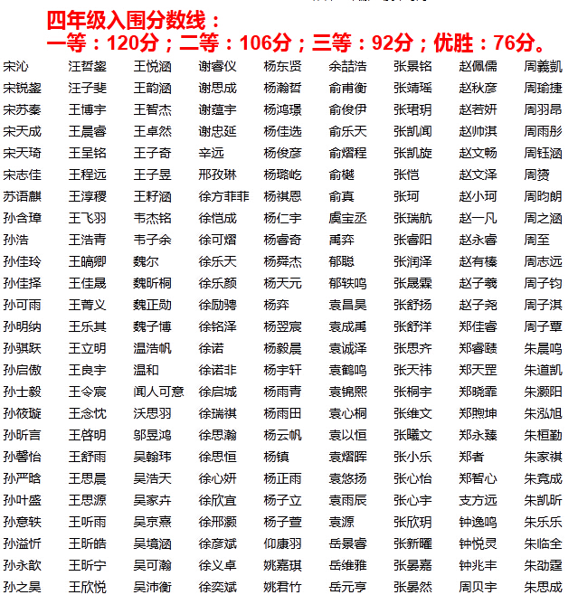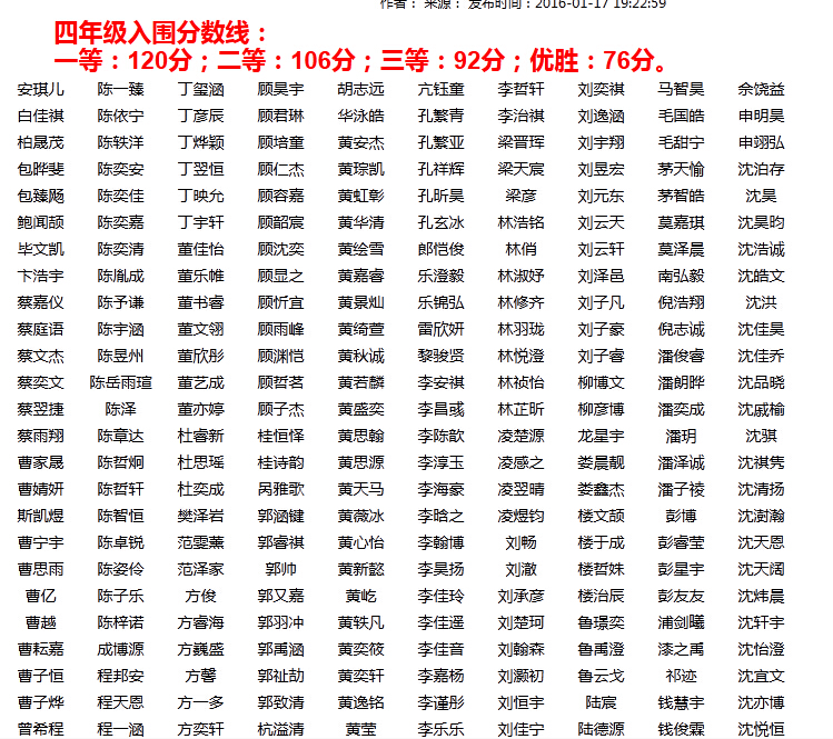 2016年上海赛区第14届走美杯决赛入围分数线出炉啦,下面小编将上海本届走美杯初赛四年级获奖名单分享如下,供上海走美杯参赛考生参考。