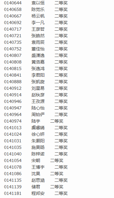 2016上海第16届中环杯决赛四年级获奖名单 上海奥数网 2016-03-18 10:32:01 2016年上海第十六届中环杯决赛成绩查询开始【点击查看各年级获奖分数线】,小编将上海本届中环杯决赛四年级获奖名单分享如下。 【获奖名单】四年级组 首页 上一页 下一页 尾页